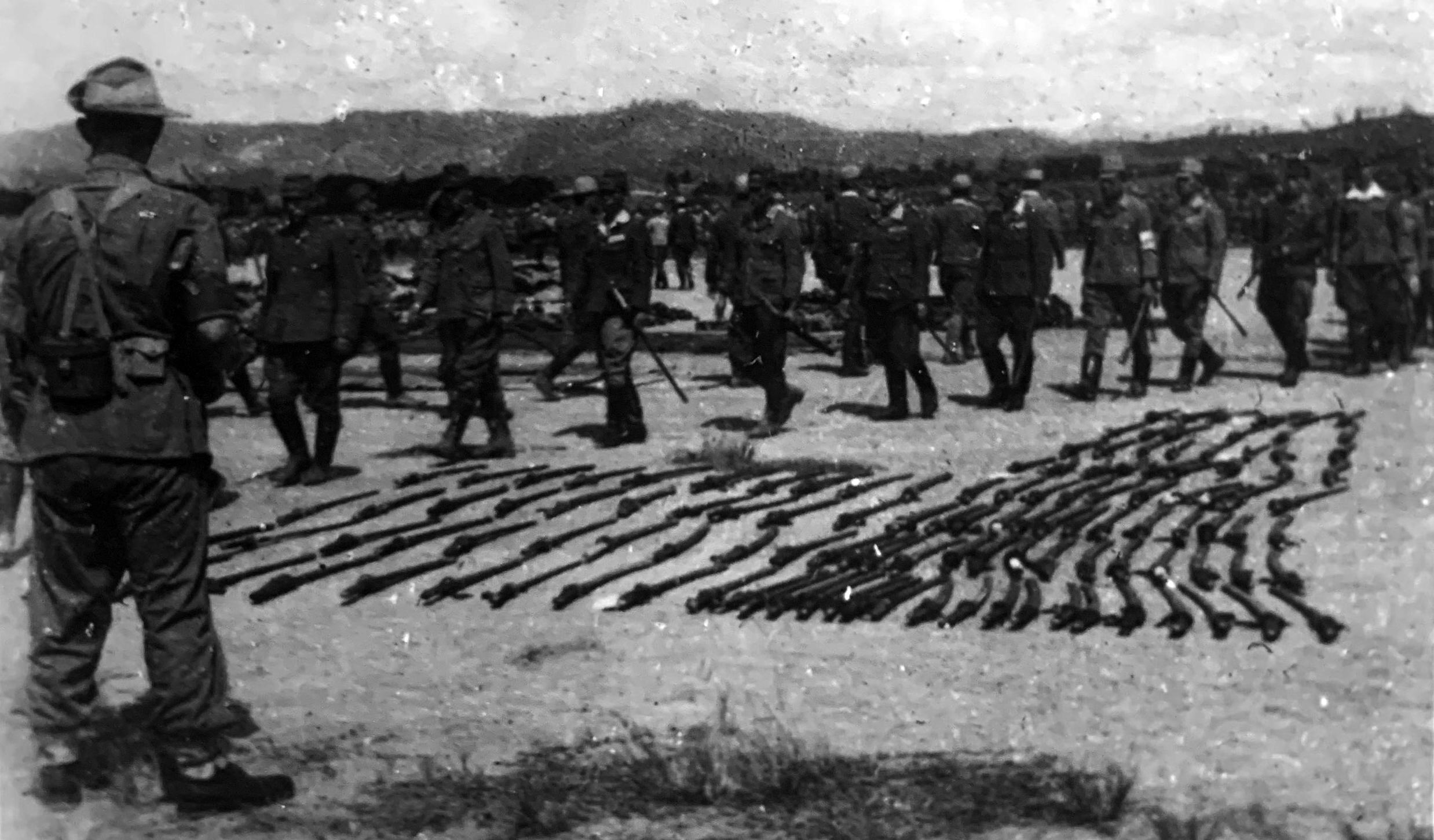 His photographs, below, include Japanese soldiers laying down arms – their swords being neatly lined up – with British troops standing alert; and the signing of surrender documents in Victoria Institute where Pte MacDonald worked.