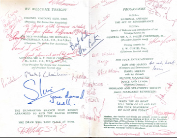 "I had my picture taken with General Sir Philip Christison and got both him and Colonel Viscount Slim to sign my service of the evening," said Joyce. "I think the names of soldiers long gone should be remembered."