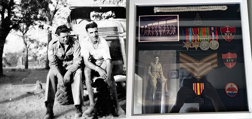 Jack trained as a specialist in ammunition and in 1941 was posted overseas to Bhavnagar, India. He saw action in Mandalay and Rangoon with the 14th Army, where he reached rank of Sergeant in the RAOC.