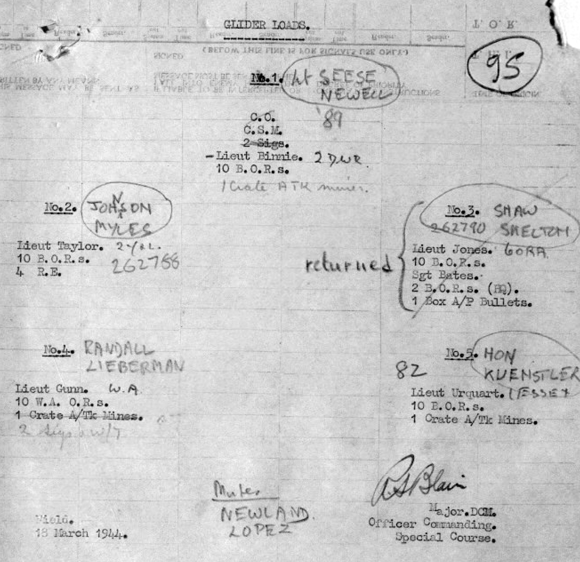 Pte. Brownhill and the other men from the 2nd Yorks & Lancs flew in aboard Glider No. 2 piloted by Lt. Johnson and 1st Lt. Carwin Miles of 1st Air Commando alongside four other soldiers from the Royal Engineers. Major Blain was injured on landing and was eventually sent back to base by light plane along with the five USAAF pilots, leaving behind his second in command, Lt. Stewart Binnie (2 DWR) to command Bladet Force in the field. The force immediately marched from the river through a dry belt area which was very tough going. They were tracked for a time by men from the Burma Traitor Army, but did not come into contact with any Japanese during their time operating in the area around the railway corridor. They succeeded in blowing up the railway in several places and also destroyed a small bridge and a large water-pumping station.